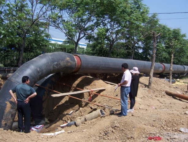 項(xiàng)目概述:2010年泰安市東城區(qū)循環(huán)水節(jié)能改造重點(diǎn)項(xiàng)目,本項(xiàng)目我們采用了預(yù)熱無補(bǔ)償直埋敷設(shè)施工技術(shù)。在供熱管道敷設(shè)方式中,直埋敷設(shè)因?qū)煌ㄓ绊懶 ⒈阌谑┕ぜ霸靸r(jià)低等優(yōu)點(diǎn)被廣泛采用。其中,無補(bǔ)償直埋敷設(shè)是一種技術(shù)先進(jìn)且造價(jià)較低的敷設(shè)方式,它與有補(bǔ)償直埋敷設(shè)相比,突出的優(yōu)點(diǎn)在于大大減少了固定支座和補(bǔ)償器小室的數(shù)量,僅在管道變徑、較大管徑與不同敷設(shè)方式(如直埋敷設(shè)與地上敷設(shè))交界處設(shè)置固定支座,特別適用于地下管網(wǎng)復(fù)雜或地下水較高的地區(qū)。 本工程地點(diǎn)在市區(qū)內(nèi),施工難度大、工期緊,我們積極協(xié)調(diào)、加班加點(diǎn),在當(dāng)年10月中旬圓滿完工,并且一次性試運(yùn)行成功,確保了采暖期的正常供熱。本工程主管網(wǎng)及分支管網(wǎng)共敷設(shè)管道70多公里,實(shí)現(xiàn)供熱面積達(dá)100多萬平方米。