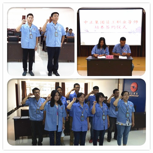 2015年9月8日上午8:30,集團駐地舉辦了員工職業(yè)導師培養(yǎng)簽約儀式和干部員工宣誓儀式。工程公司3名新員工與導師正式簽約。集團駐地9名干部員工面對司旗,莊嚴宣誓:忠誠集團事業(yè),秉承集團宗旨,弘揚集團精神;團結協作、努力進??;全心全意,爭先創(chuàng)優(yōu);為興我中正,而竭盡全力。