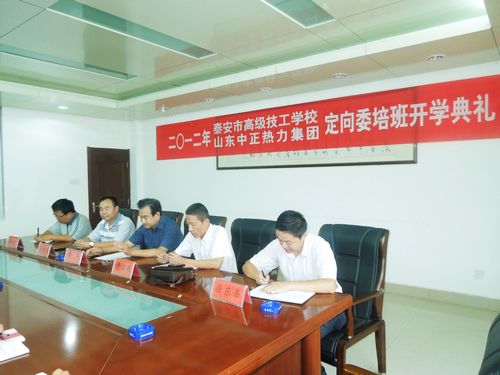 2012年9月12日上午10點整,山東中正熱力集團(tuán)與泰安市高級技工學(xué)校聯(lián)合辦學(xué)定向委培班開學(xué)典禮在市高級技校會議室順利舉行,由市高級技校副校長徐東岳擔(dān)任主持,市高級技校黨支部副書記董軍、機(jī)械系教務(wù)處副主任張永生、集團(tuán)總經(jīng)理助理、泰安東城公司經(jīng)理許宏建、綜合部主任李體民參加了典禮。開學(xué)典禮上董書記、許經(jīng)理作了重要講話,對校企聯(lián)合辦學(xué)給予高度肯定,對第一期定向委培的同學(xué)們寄予厚望。